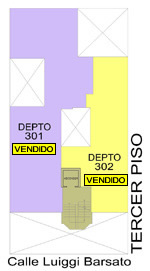Departamento 302 del tercer piso con 68.15 m2. Consiste en sala-comedor, cocina-lavandería, 2 dormitorios, baño secundario.
