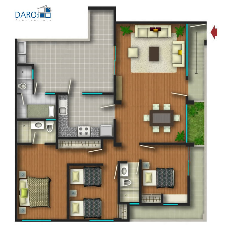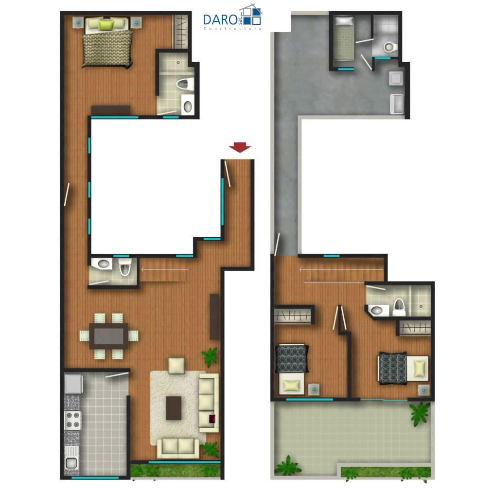 Las imágenes presentadas son solo referenciales, pueden existir variaciones tanto en los espacios como en los acabados finales.