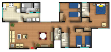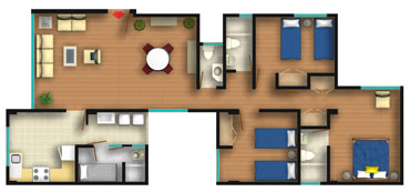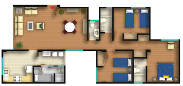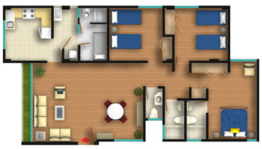 Todos los departamentos tienen Sala-Comedor, 3 dormitorios, baño principal incluido en el dormitorio principal, baño secundario y baño de visita. El área de servicio consiste en la cocina, patio-lavandería, cuarto de servicio y baño de servicio.