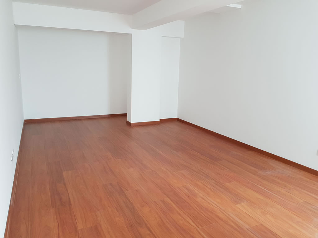 Piso laminado para la sala-comedor, estar, hall y dormitorios.