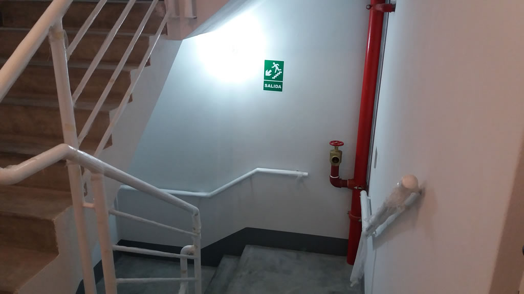 Luz de emergencia en el semisótano y en el hall de distribución de cada piso (se enciende por corte del fluido eléctrico).